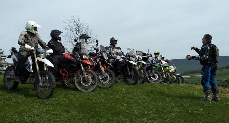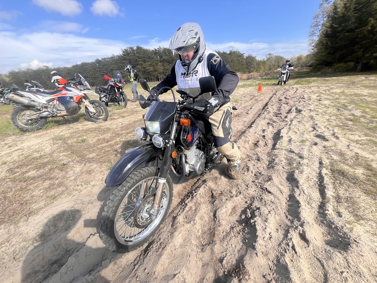 This is a beginner to intermediate weekend course on how to ride a dual sport or larger adventure bike off pavement. We cover basic balance, cornering, acceleration, braking, ruts, puddles, and sand. We also focus on line selection, throttle control, balance and gear selection among many other elements. You will have fun while being challenged learning the foundations of off pavement riding. We venture onto real world gravel roads and trails that will solidify your skills and give you the confidence for exploring anywhere.